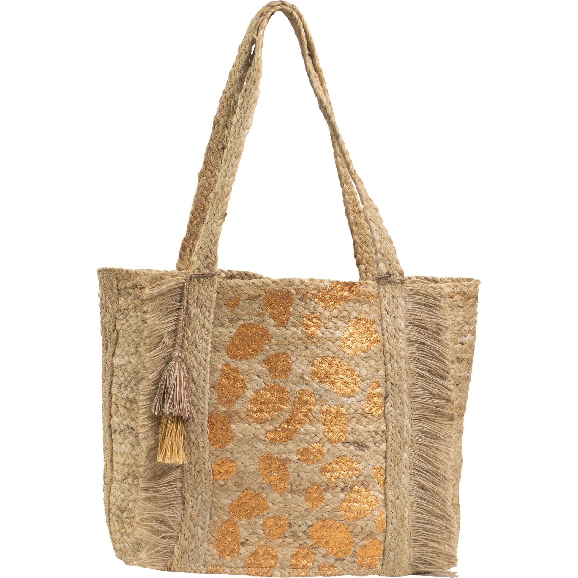 Magid Metallic Leopard Print Natural Straw Jute Tote