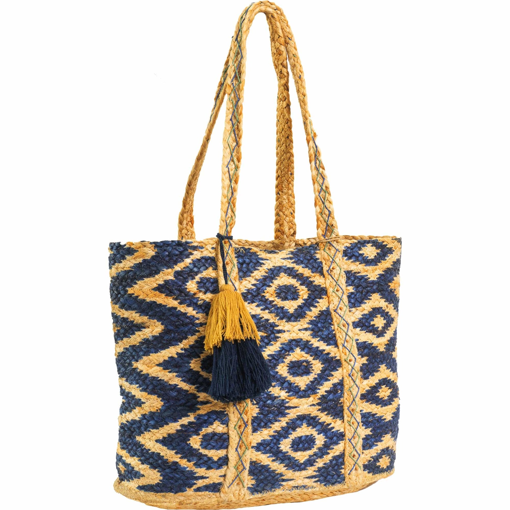 Magid Chevron Print Natural Straw Jute Tote