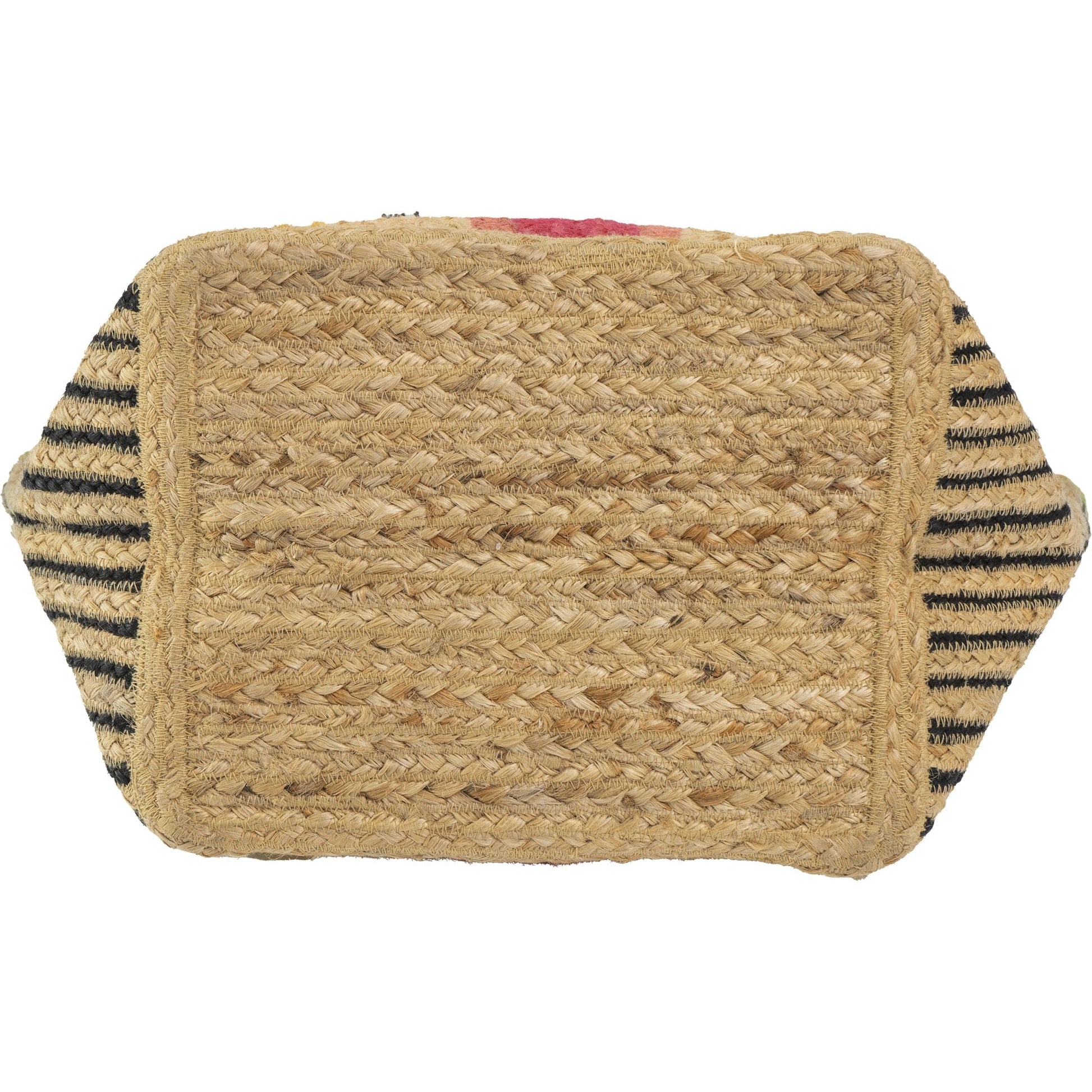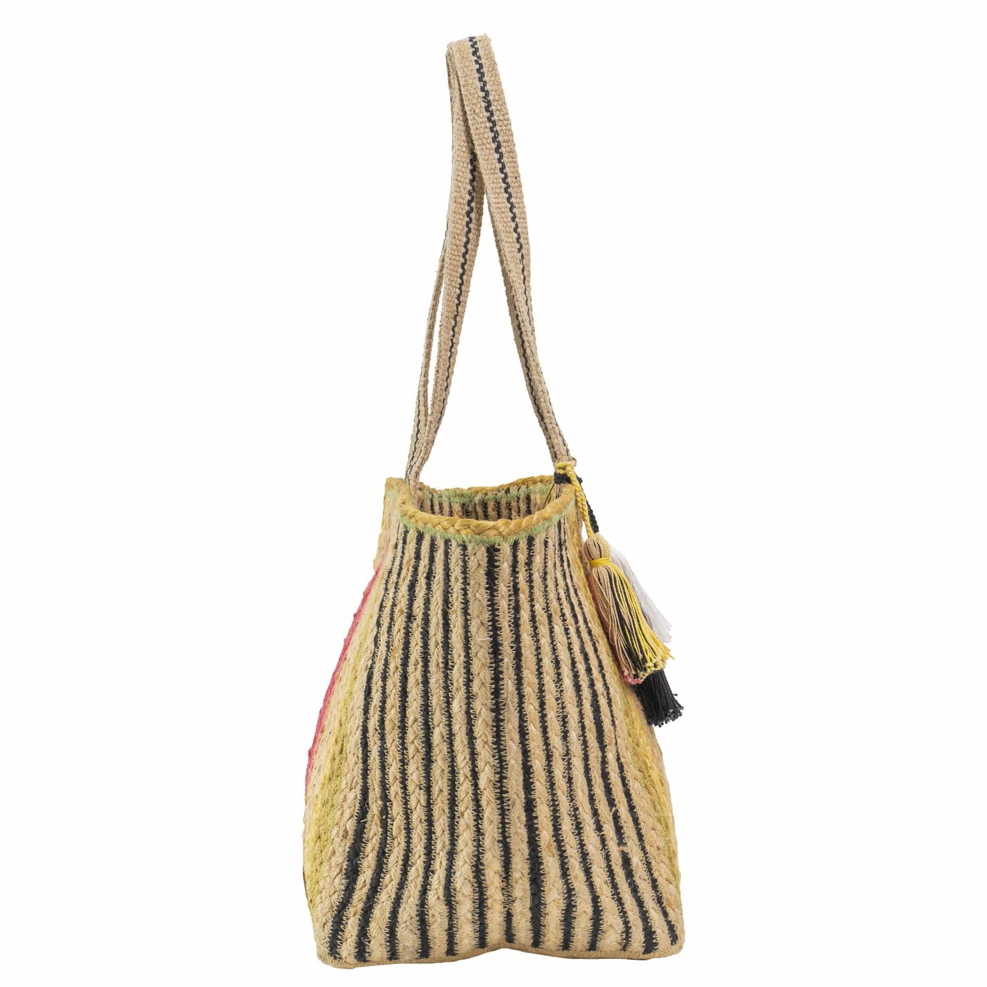 - Striped Jute Weave: Crafted from natural jute in alternating color stripes, this tote offers a timeless and earthy aesthetic.