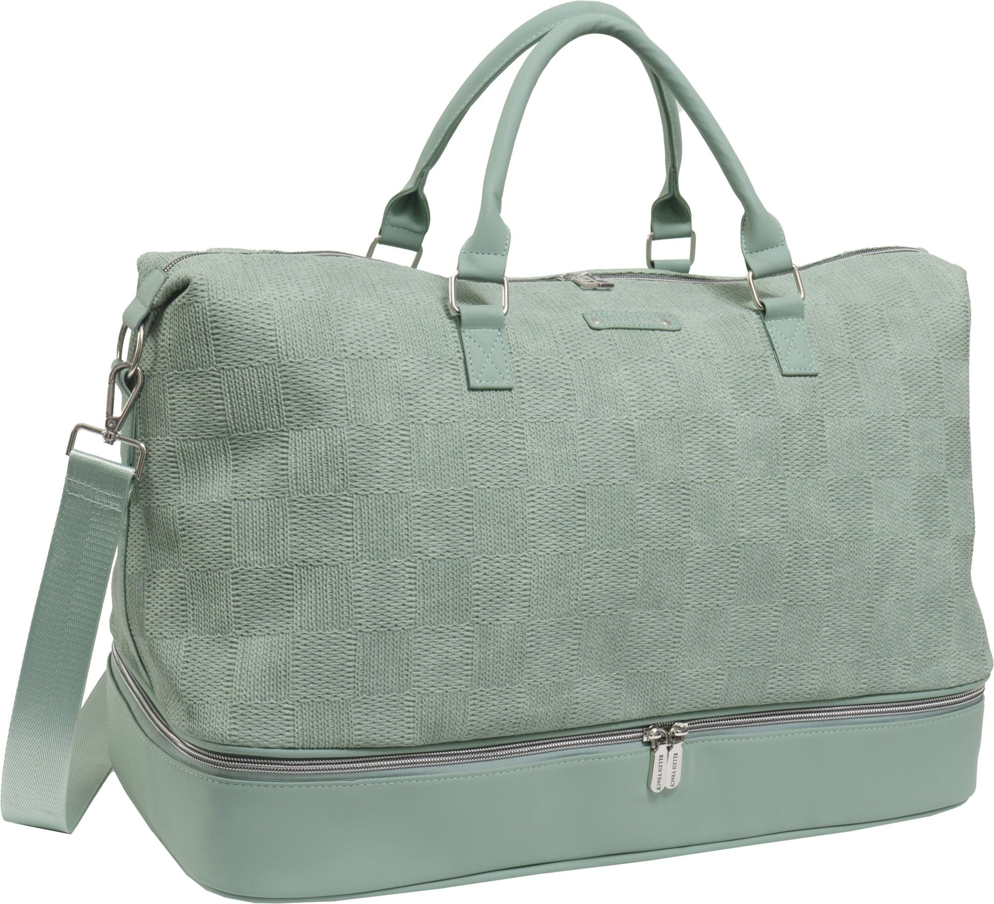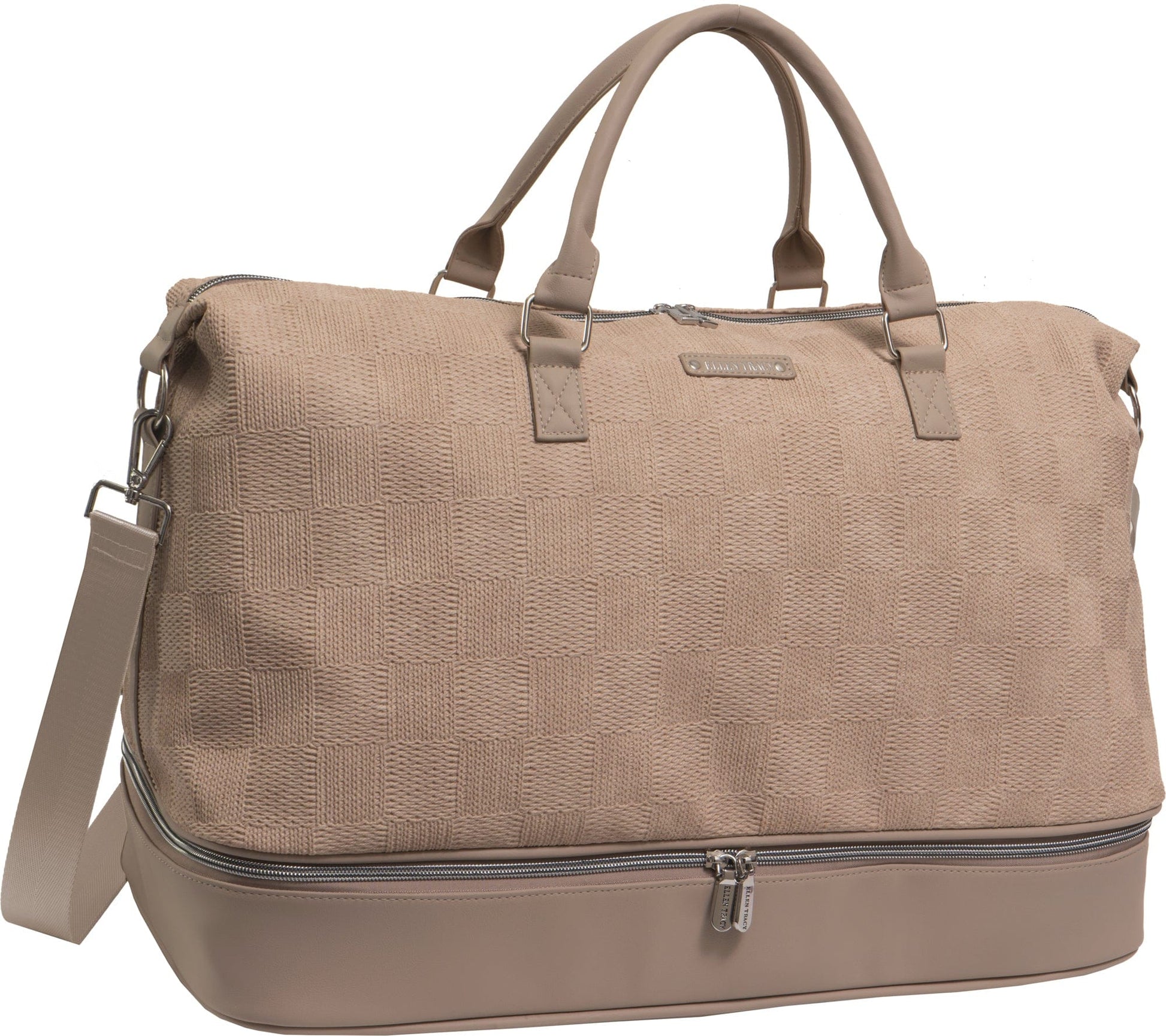 This Ellen Tracy duffle is a travel staple that includes a spacious main compartment and a drop‑bottom shoe compartment, ideal for keeping your shoes or dirty clothes separate from the rest of your belongings. The adjustable and detachable shoulder strap, along with sturdy top handles, offer versatile carrying options to suit your needs.