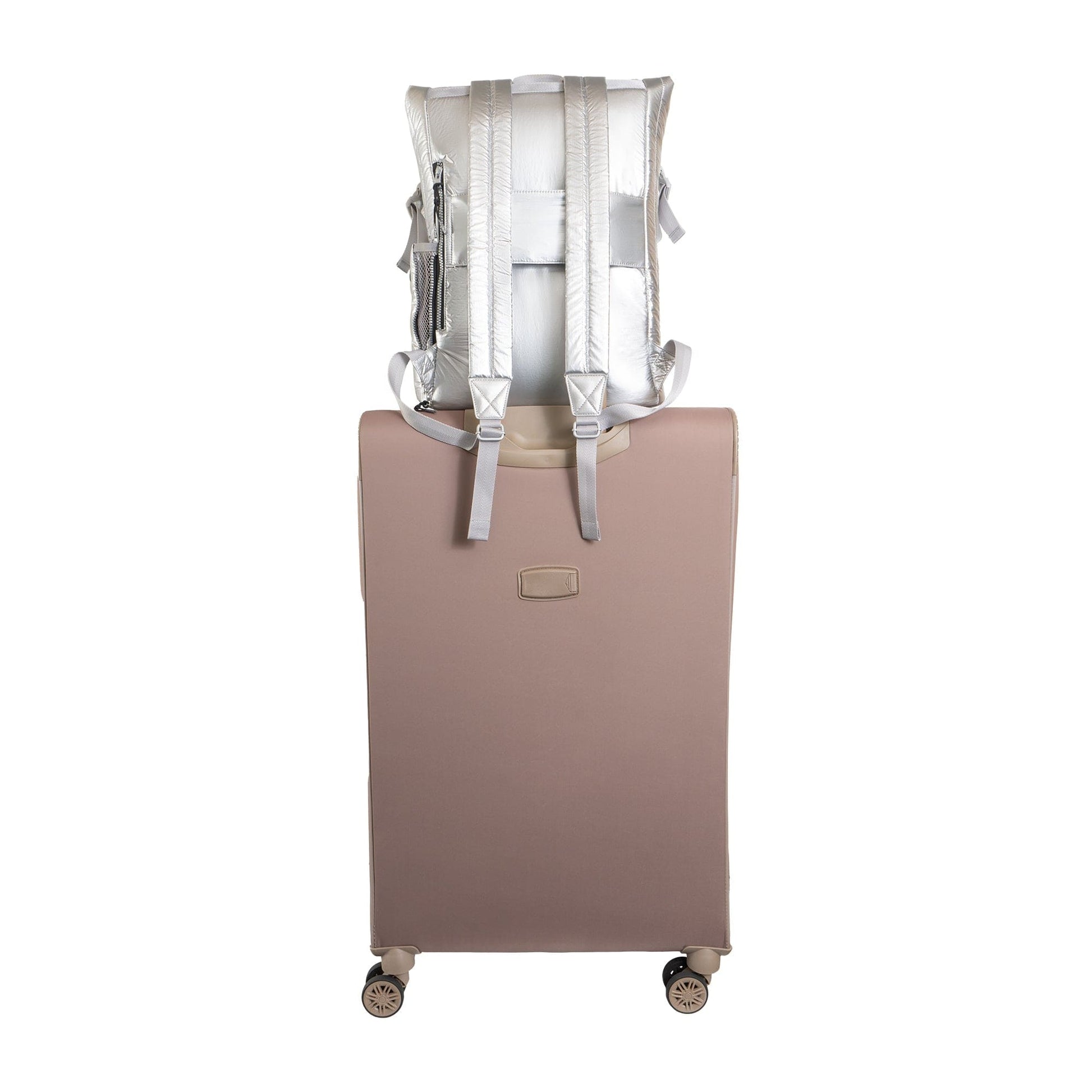 - Elasticized side pockets for carrying water bottles, umbrellas, or other tall essentials.