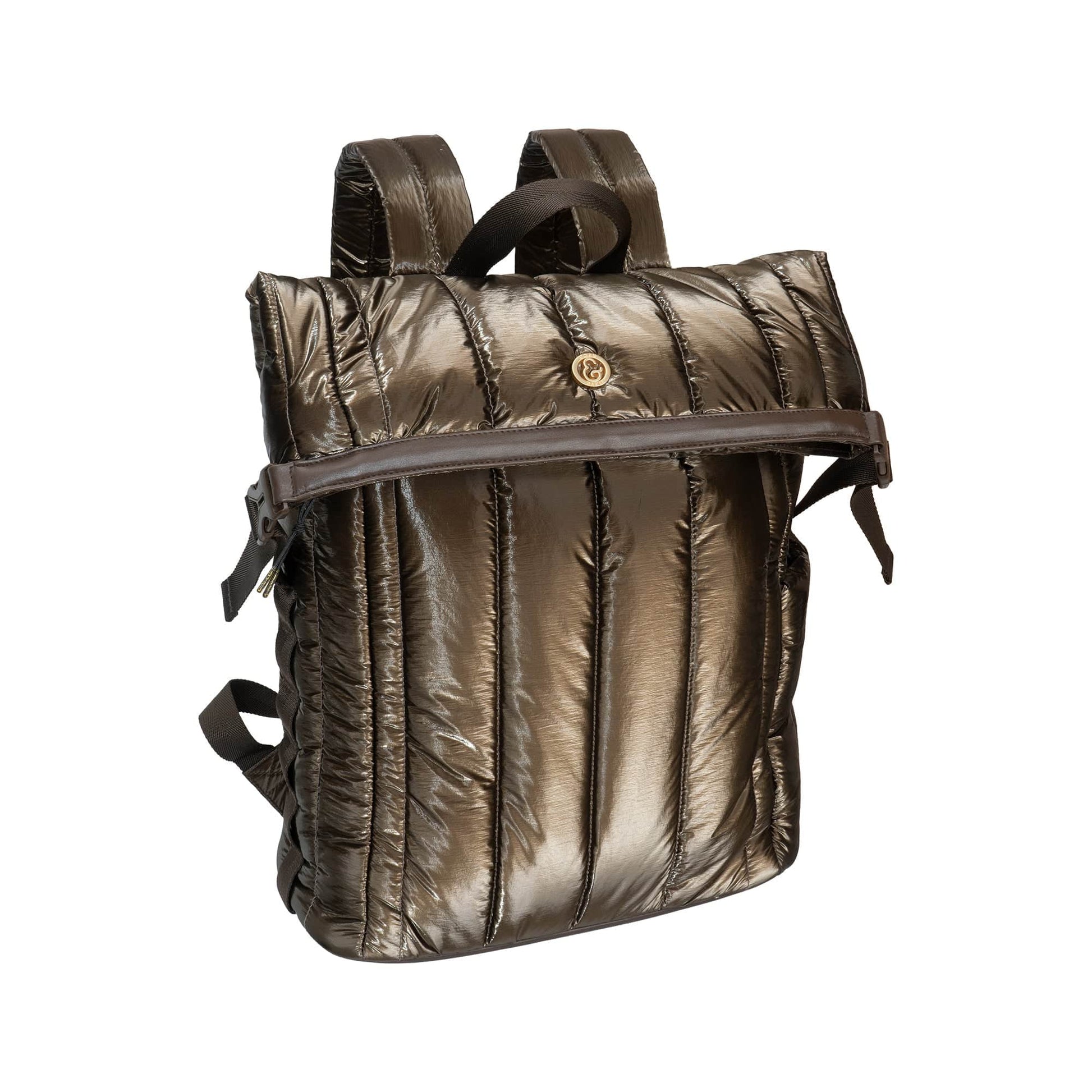Joan & David Tubular Quilted Metallic Puffer Nylon 18-Inch Workbook Backpack
