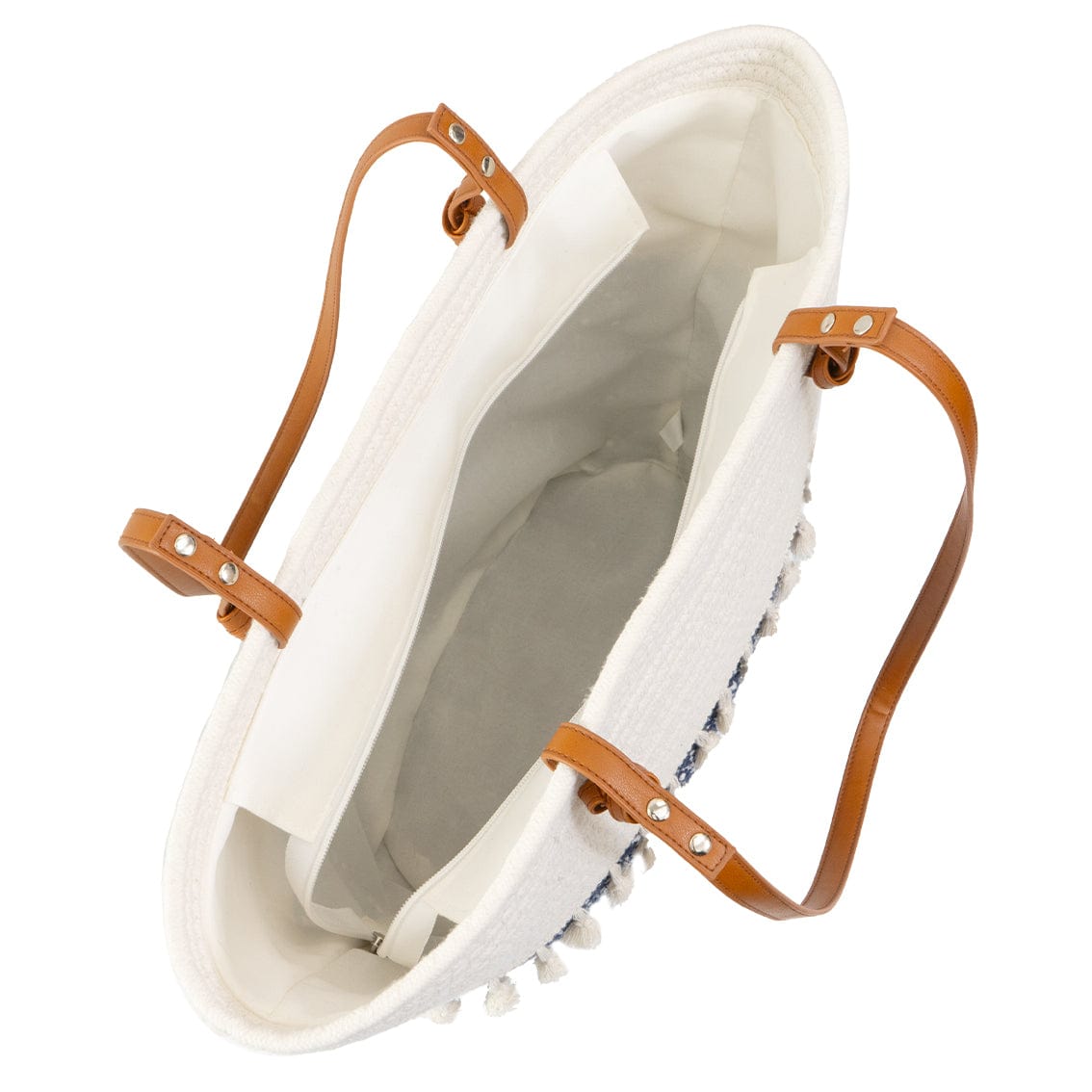 Magid Natural Cotton Woven & Faux Leather Fringe Shoulder Tote