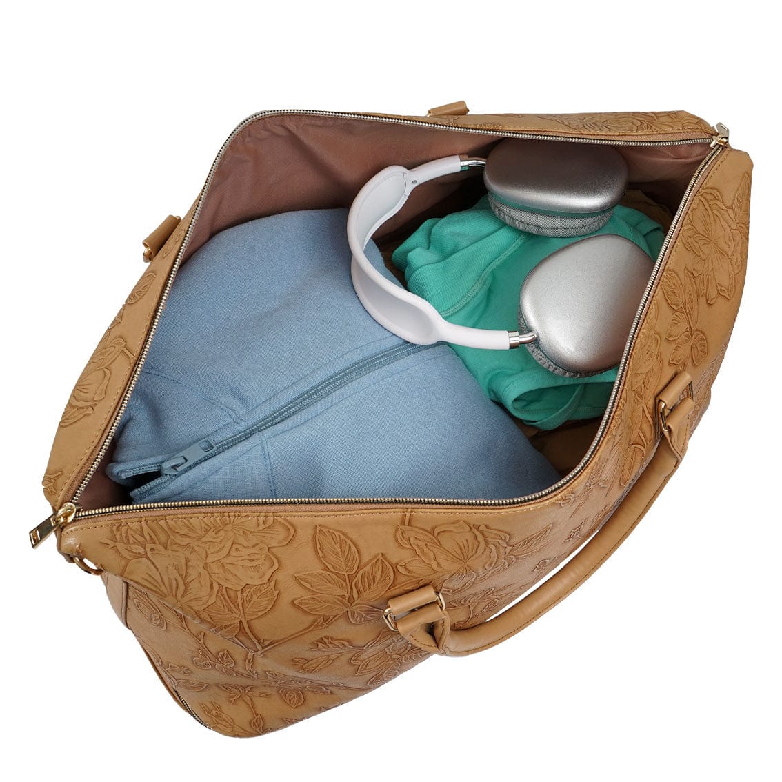 Ellen Tracy 20 Inch Floral Embossed Drop Bottom Duffel