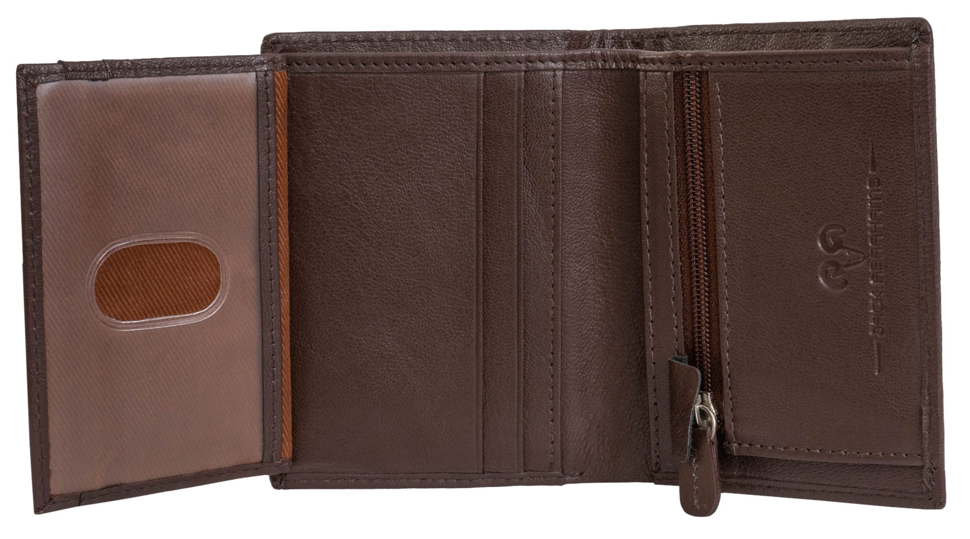 Jack Abrahams Goat Nappa Leather Bi-Fold Wallet with Zipper Pocket Brown