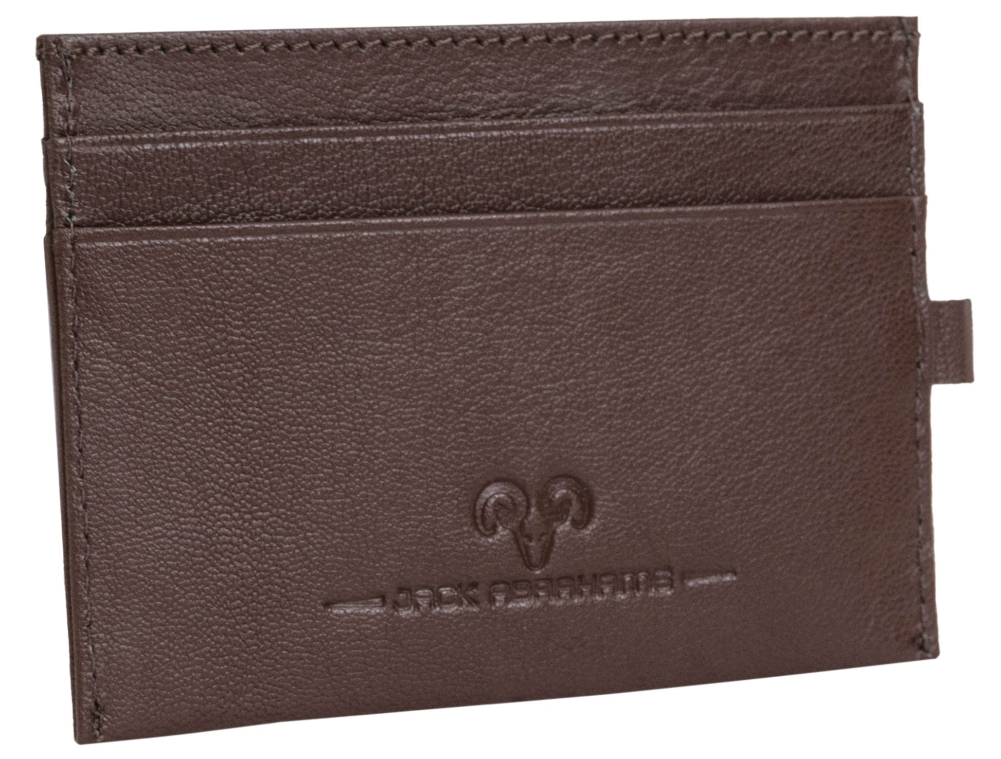 Jack Abrahams Goat Nappa Leather Card Case Minimalist Wallet Brown