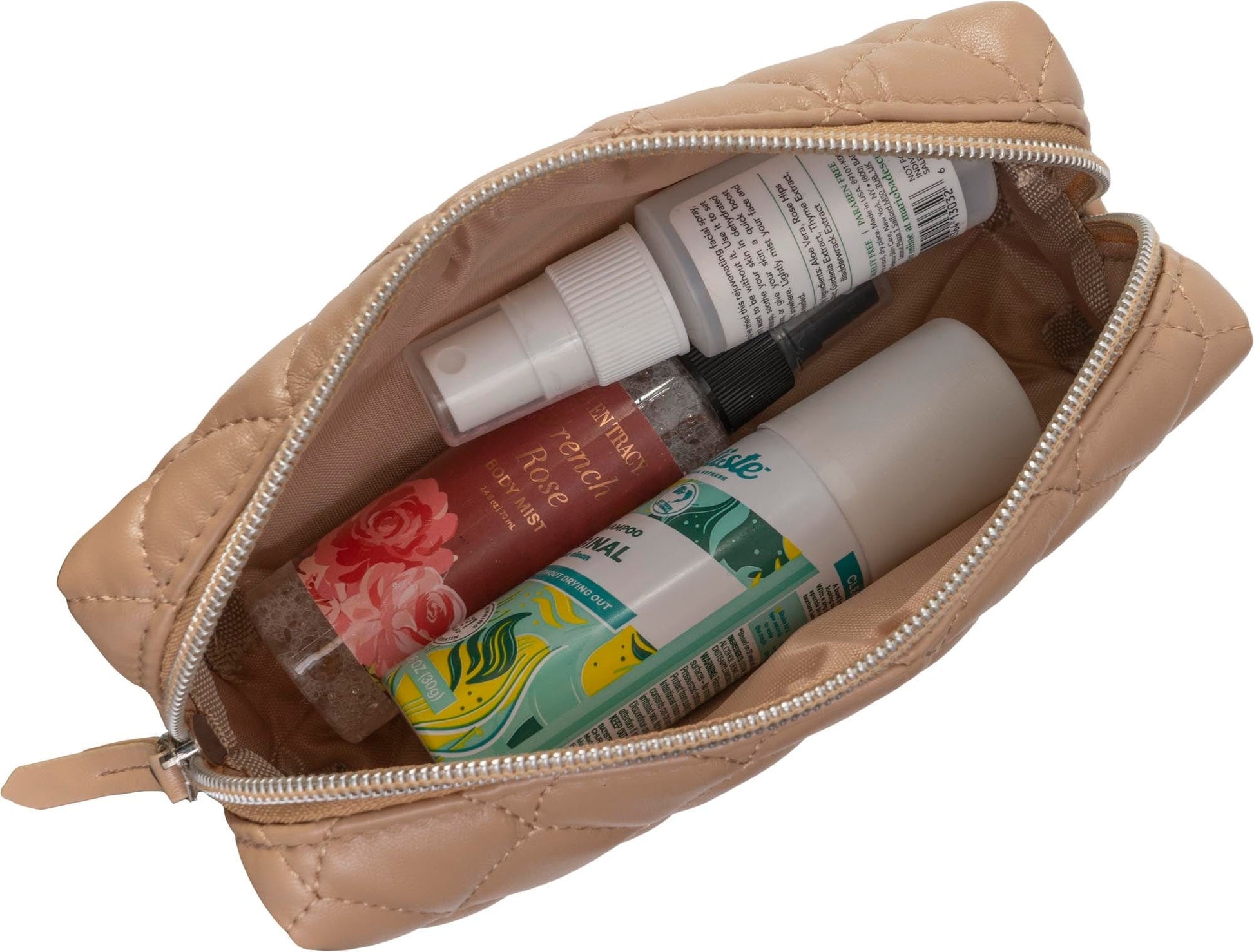 - One Top-Handle Zippered Train Case: Spacious enough to store makeup or larger toiletries.