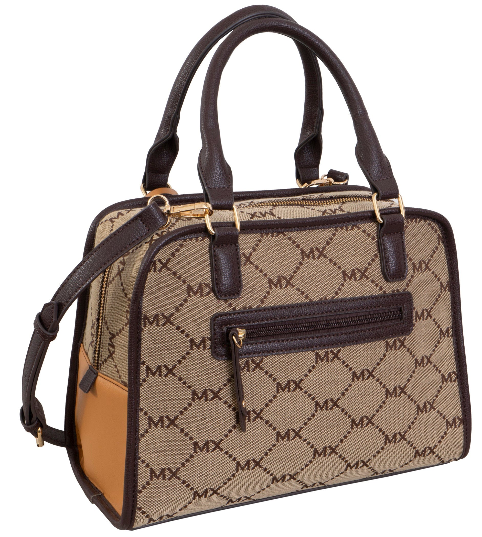 Constructed with faux leather trim, handles, and strap, this satchel offers both durability and a chic look. The gold-tone metal hardware enhances the bag's luxurious feel, making it an eye-catching accessory. For added convenience, the bag comes with an adjustable and detachable crossbody strap, allowing you to switch up your carrying style effortlessly.