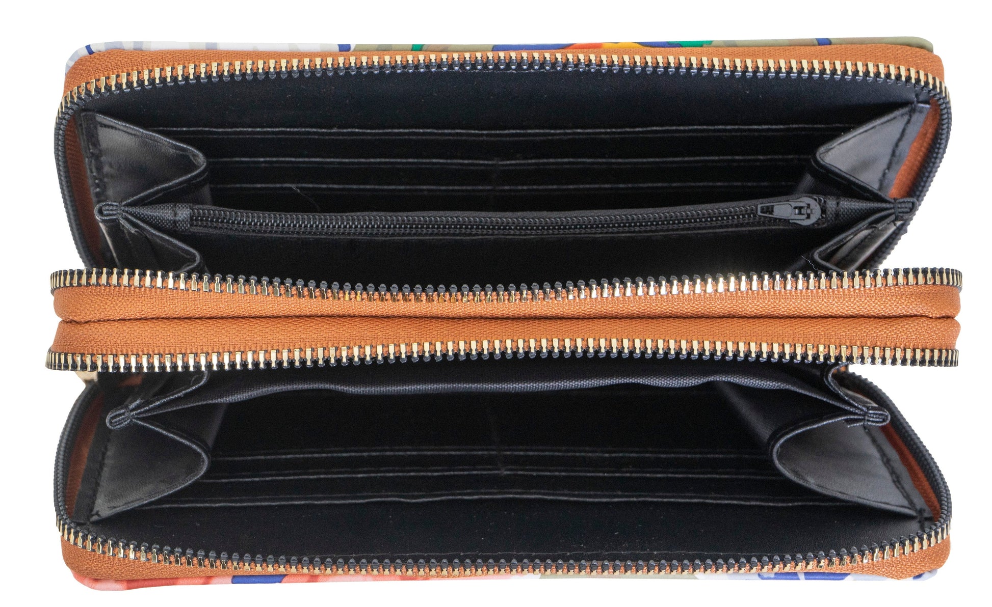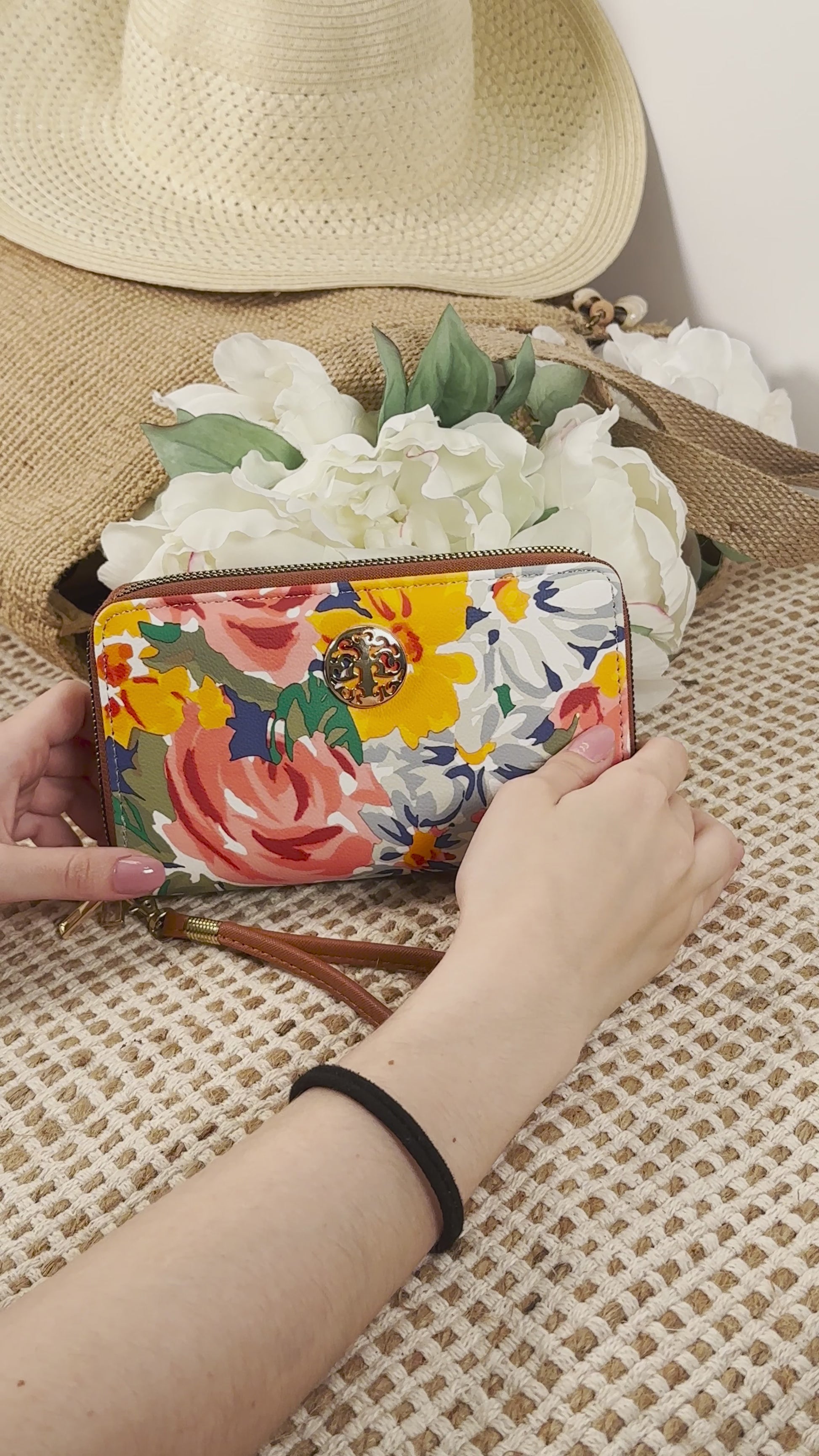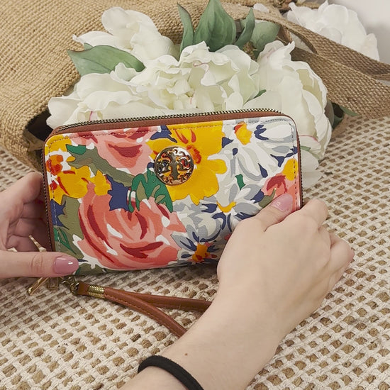 Rebecca & Rifka Floral Print Medallion Double Zip Wristlet Wallet