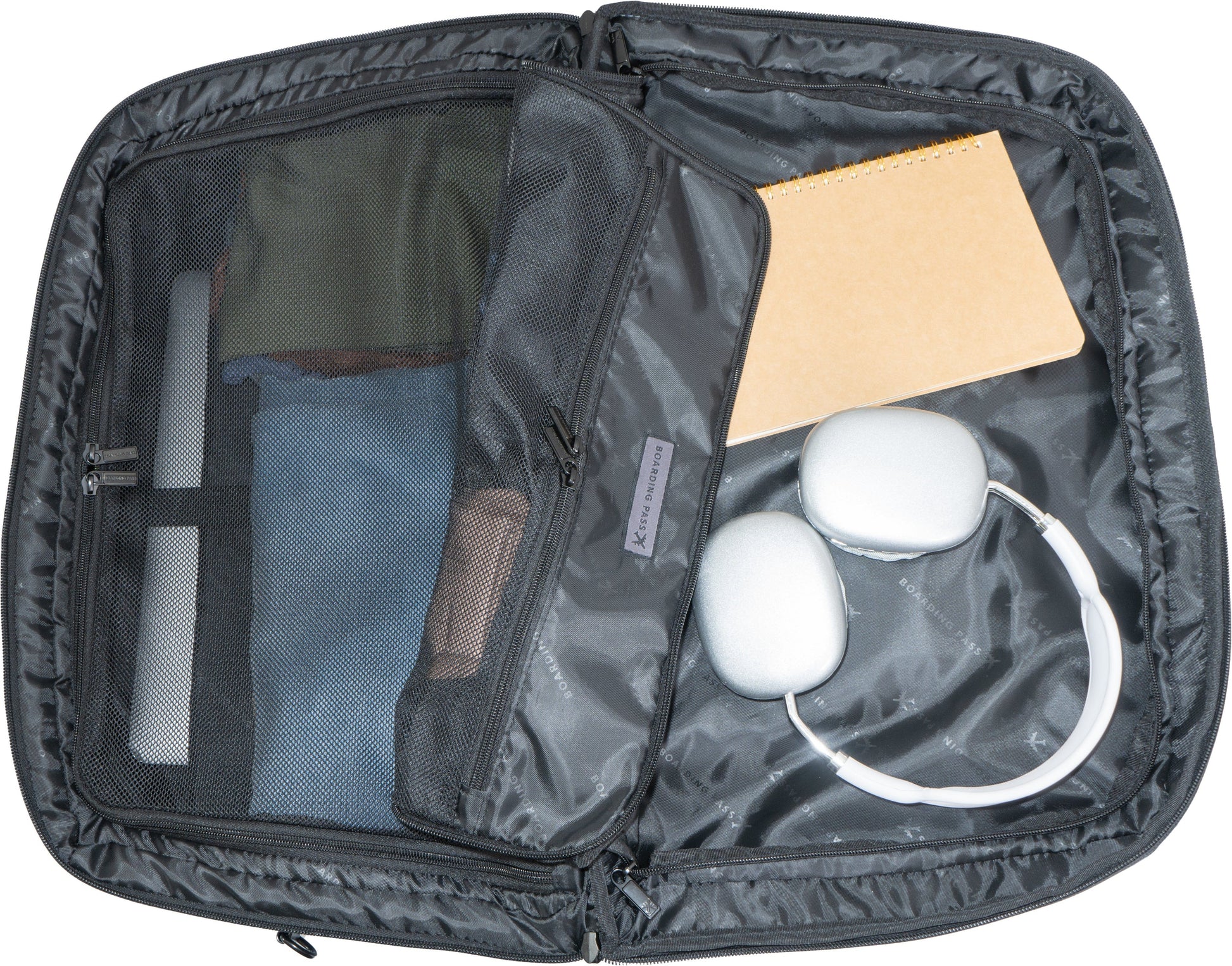 Features a mesh organizer with a zippered pocket—ideal for quick-access travel essentials -