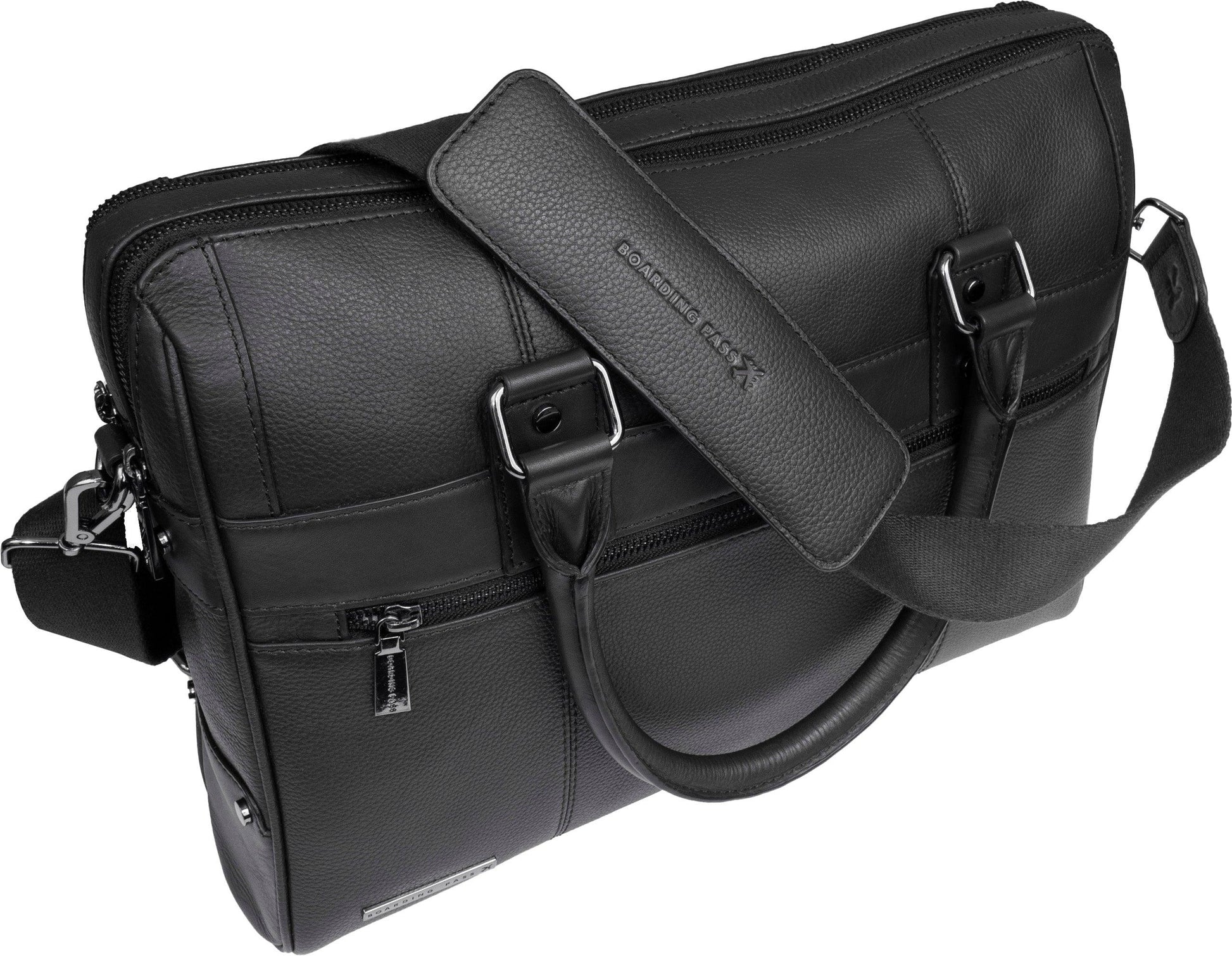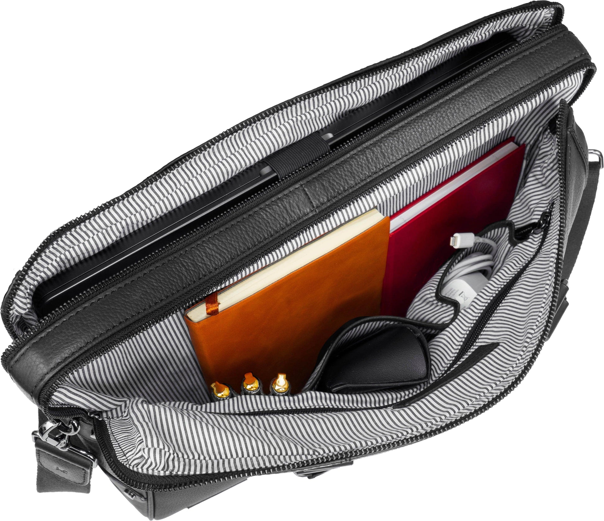 The Gotham 18" Pebble Grain Genuine Leather Briefcase combines modern style with functionality. It features a front zippered compartment and a large dual-compartment interior with a laptop and tablet sleeve (fits most laptops up to 16") and a pinstripe lined interior. With additional slip interior compartments, an add-a-bag feature, a duster bag, and a padded adjustable crossbody strap and top handle, this briefcase is designed for the contemporary professional.
