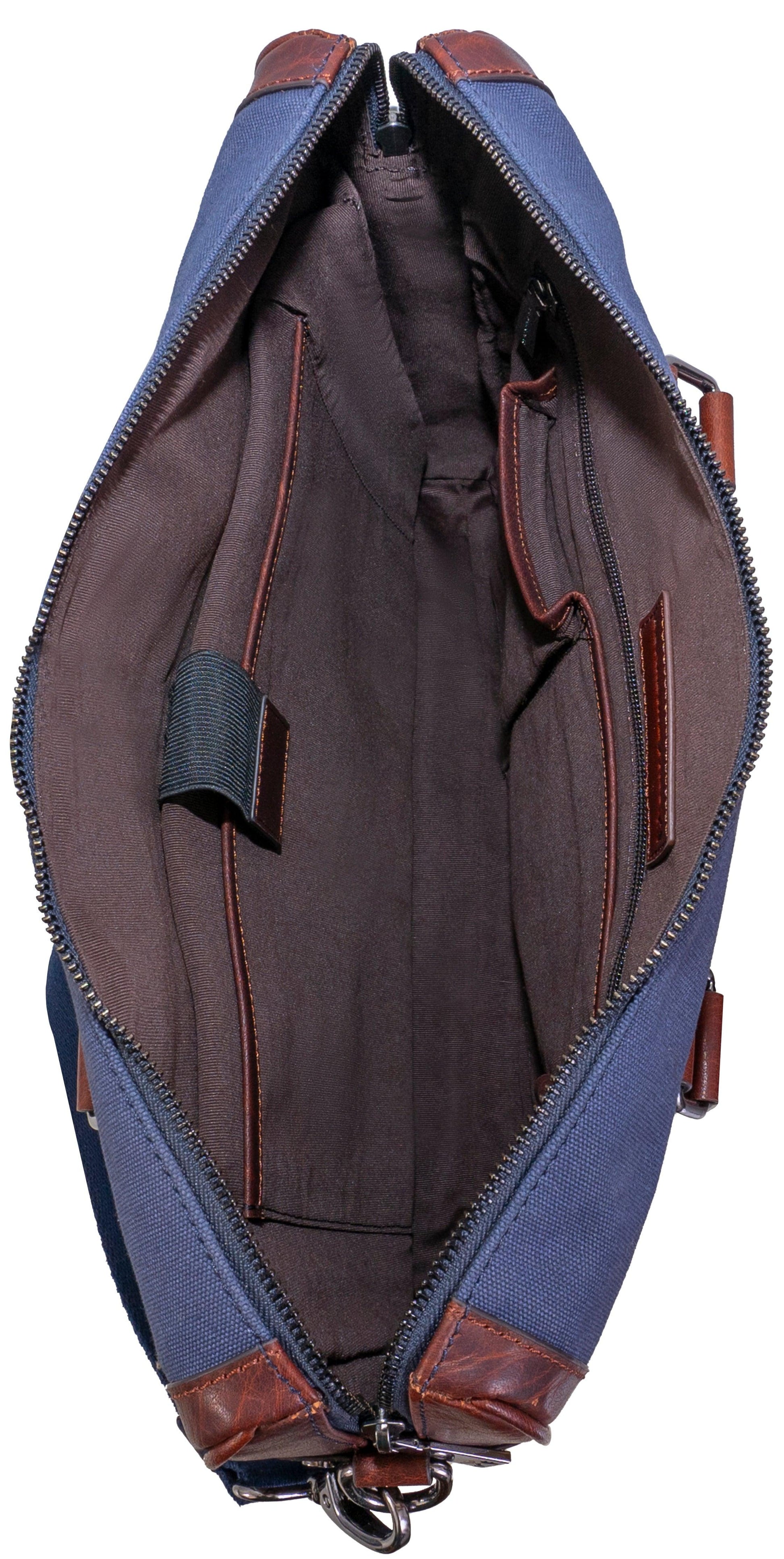 The Toronto 16” Canvas & Leather Briefcase combines classic style with modern functionality. It features genuine leather top handles and trim, a padded laptop sleeve (fits laptops up to 15"), and interior slip compartments. The front zippered compartment and add-a-bag feature on the back wall enhance its practicality. Crafted from veg-tanned leather and durable canvas, it also includes adjustable and detachable shoulder straps for versatile carrying options.